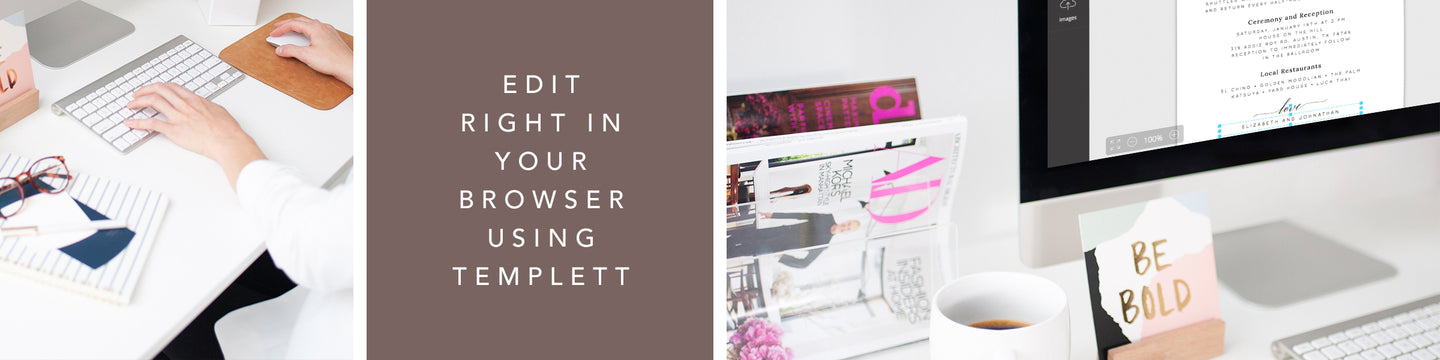 Choose the design you love, complete the purchase, you'll then receive an email from Templett within minutes with an access link to access your new templates. You won't need to install any fonts or program.